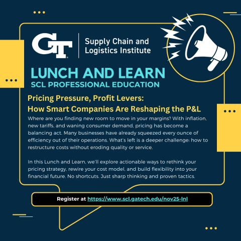 Join Chris Gaffney and Chuck Easley with the Georgia Tech Supply Chain and Logistics Institute as they discuss actionable ways to rethink your pricing strategy, rewire your cost model, and build flexibility into your financial future.