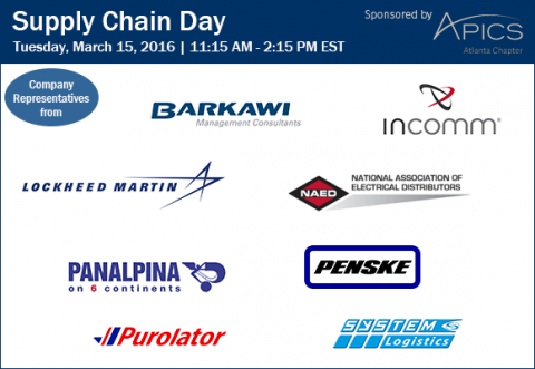 ISyE students, please join us for our second spring Supply Chain Day! The 3-hour session will host supply chain representatives from Barkawi Management Consultants, InComm, Lockheed Martin, NAED (National Association Electrical Distributor), Panalpina, Penske, Purolator, and System Logistics who will be on campus to educate ISyE students about their organizations and available employment opportunities.