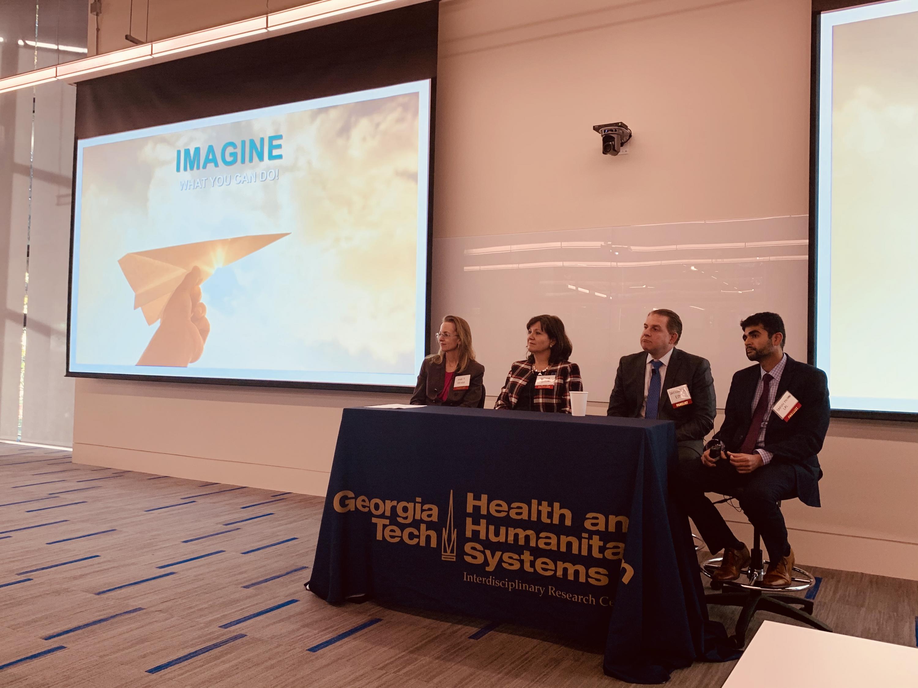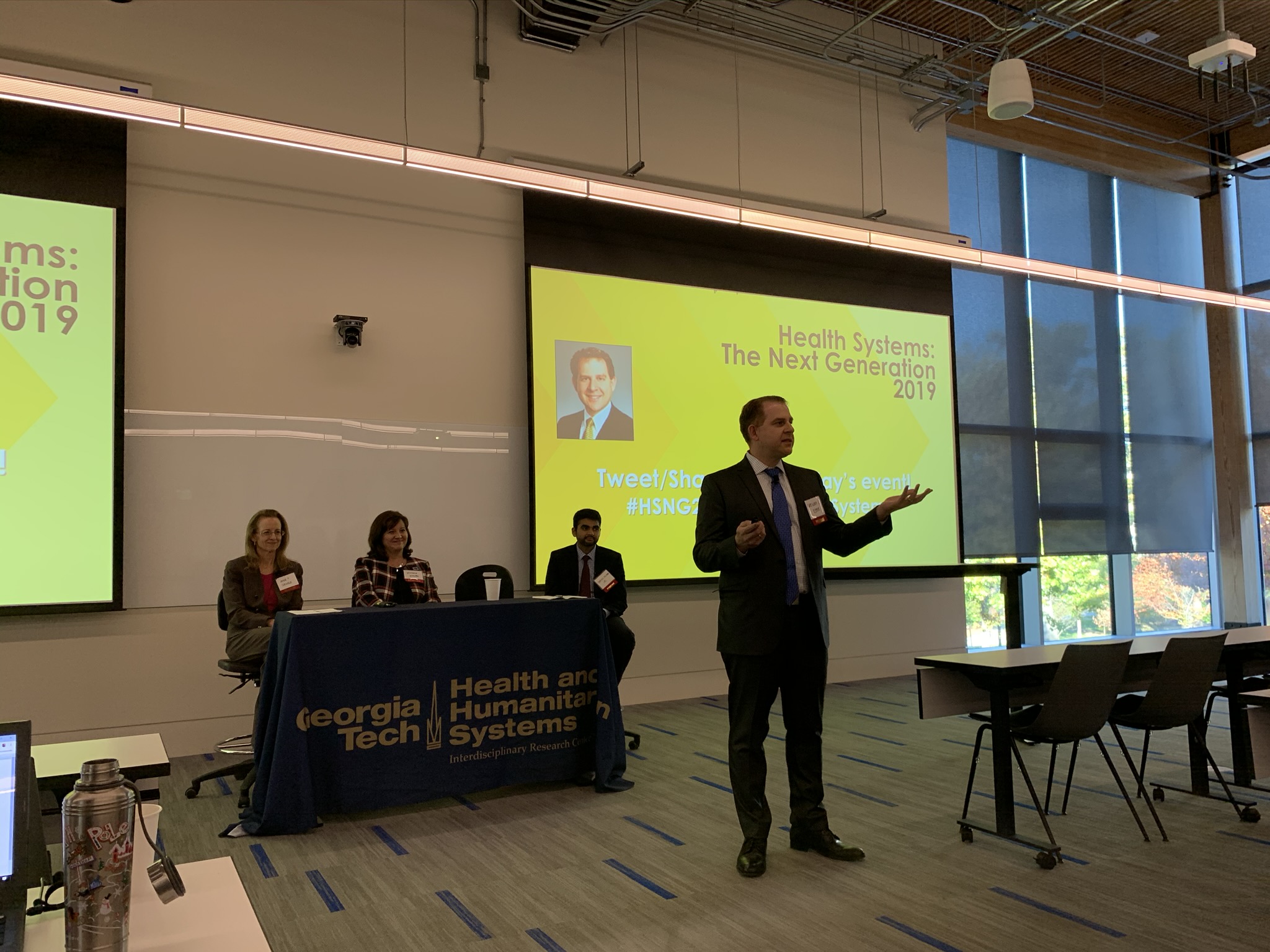 The Center for Health & Humanitarian Systems (CHHS) hosted Health Systems - The Next Generation, a forum bringing together 120+ professionals, thought leaders, students, and researchers. Presentations and discussions focused on new technologies and innovative quantitative approaches to promote and maintain wellness. The forum served as a platform for identifying challenges and important trends in health system applications, opportunities for collaboration, and ideas for future innovations and effective practices. The event kicked off with an exciting set of presentations and posters, showcasing new research and applications followed by a panel session comprised of experts from various health systems: Joyce Siegele, Northside Hospital; Victoria Jordan, Emory Healthcare; Greg Esper, Emory University School of Medicine; Tarun Mohan Lal, Navicent Health. With the ultimate goal of providing the right care at the right place and time, panelists agreed that it is necessary to expand preventive healthcare services, establish evidence-based standards for clinical care, and build a culture to promote continuous workflow improvement that can adapt to changing conditions to promote health and well-being.